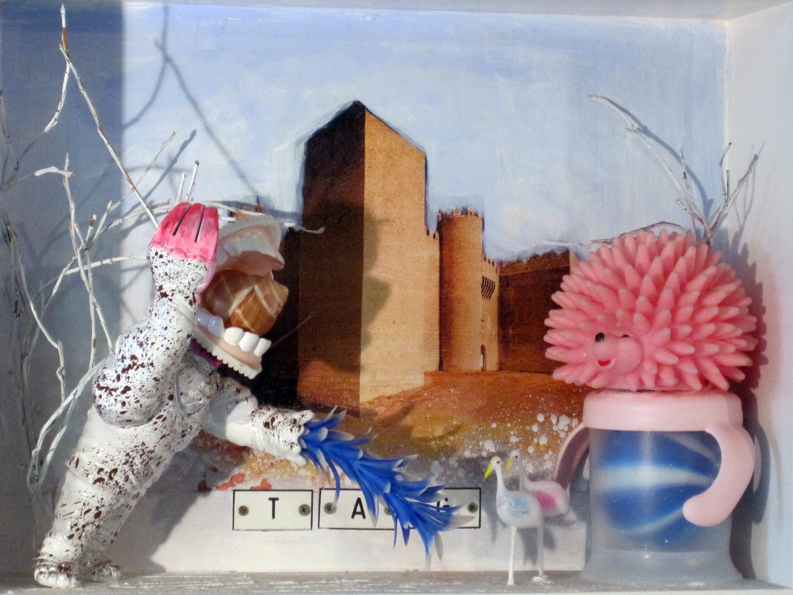 Es sind Dinge, die den Betrachter an seine Kinderzeit erinnern und an das winzige Universum in der Spielkiste. So entstehen phantastische kleine Welten. Diese ironisieren und irritieren unseren Glauben, unser Verständnis von Konsum und Fortschritt, wenn Sperrmüll zum Memento Mori wird.